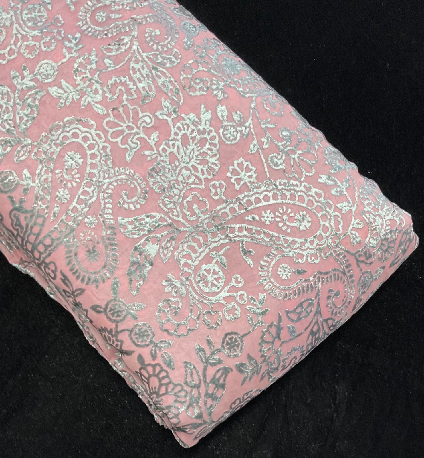 Add a touch of luxury to your creations with our Brasso Velvet fabric, featuring rich texture and elegant patterns. Soft to touch with a graceful fall, this fabric is perfect for festive, party, and designer outfits.