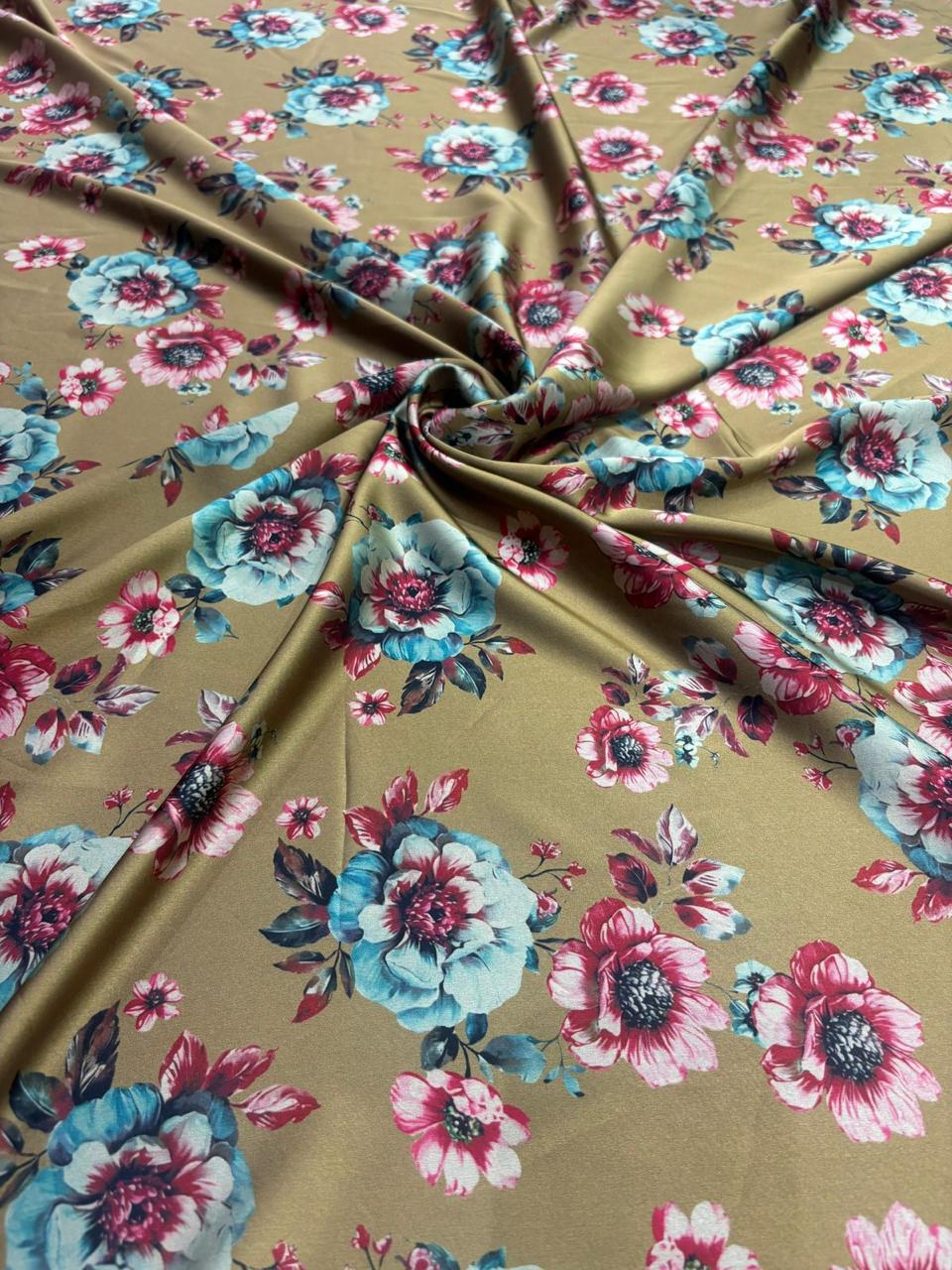 Add a touch of elegance to your wardrobe with our premium Mustard floral printed satin fabric. Featuring a smooth, silky texture and a graceful shine, this fabric drapes beautifully and suits both festive and everyday styles.