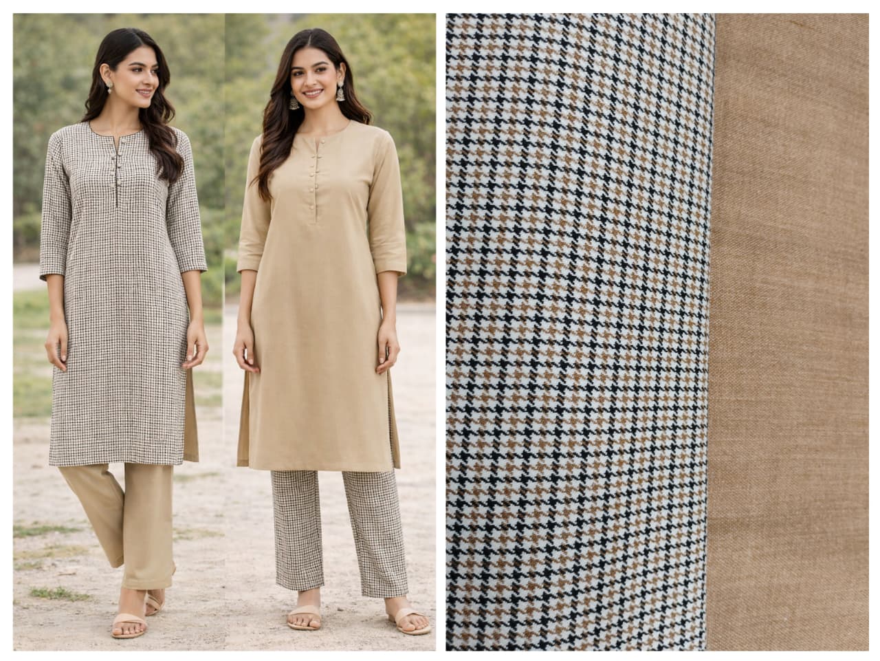 The subtle checks and solid neutral tones make it versatile for both workwear and relaxed weekends, giving you a refined yet cozy feel all day long.