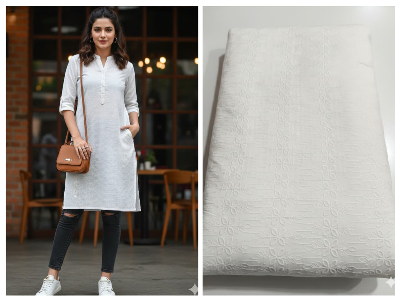 White Chikankari Embroidered Fabric – 60” Width | ₹300 per Meter
